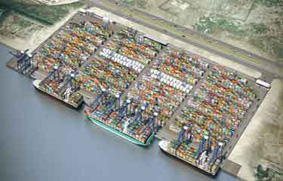 La terminal, la más grande del país con una longitud de muelle de 2 km, tendrá una capacidad de 4,8 millones de teus anuales y un costo de US$ 1.300 millones.