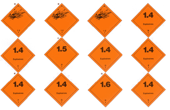 | 1.3 | Substancias y artículos que tienen riesgo de incendio, y riesgo de explosión menor o riesgo de proyección o ambos, pero no riesgo de explosión en masa. |